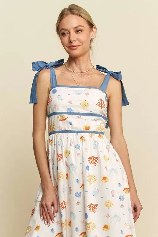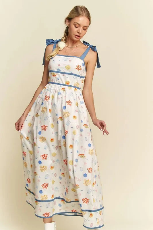 A denim binding detail smocking summer maxi dress is a stylish and flattering piece for warm weather. The smocking detail adds texture and a comfortable fit to the dress, while the denim binding adds a casual and trendy touch. This maxi dress is perfect for a day out or a casual summer event. Pair it with sandals and a sun hat for a chic and effortless look.