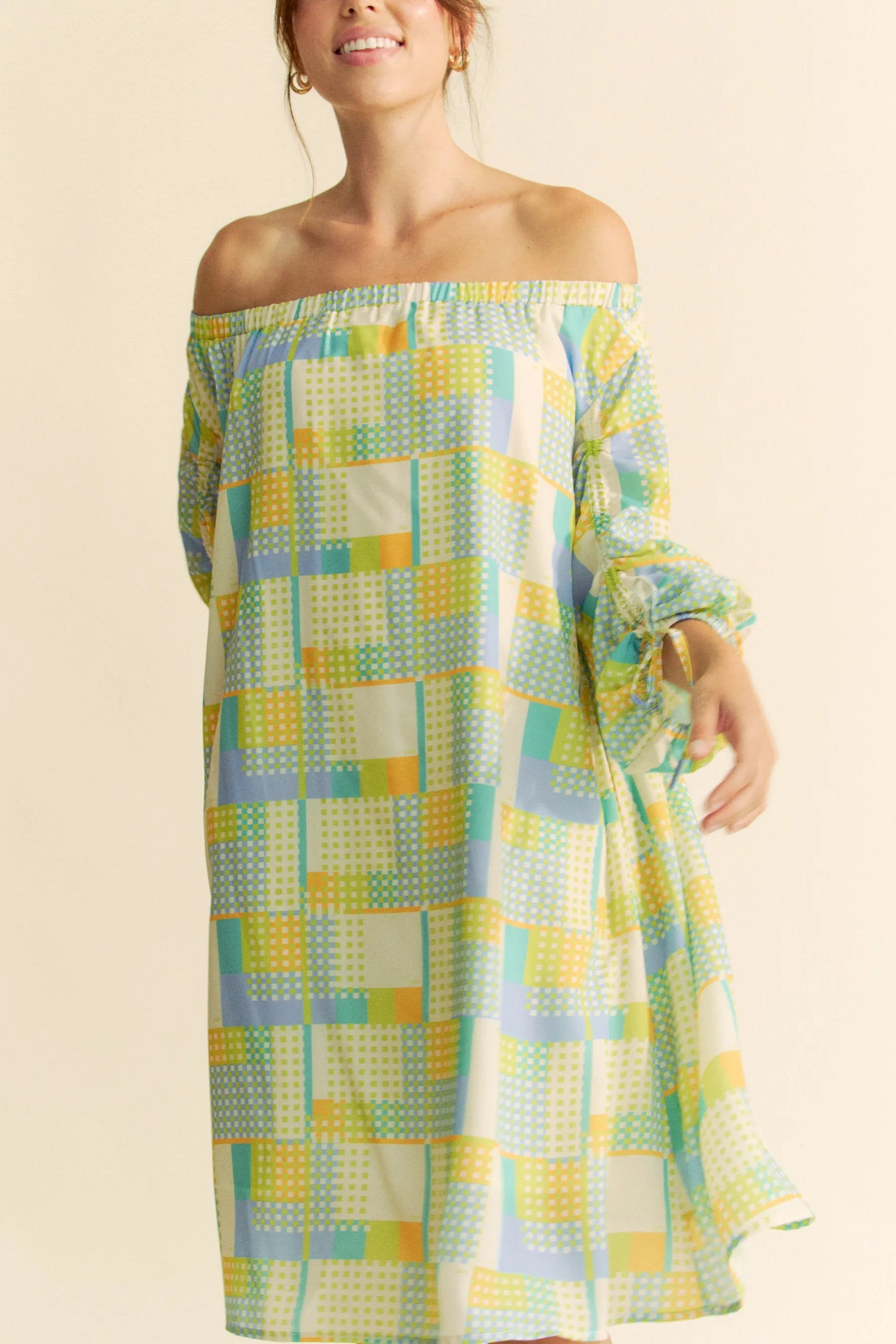 The Printed Off Shoulder Drawstring Sleeve Mini Dress is a chic and trendy option for a summer day out. Featuring an off-shoulder neckline and drawstring sleeves, this dress offers a stylish and flattering look. The printed design adds a whimsical touch, perfect for a beach vacation or brunch with friends. Stand out in this fashionable mini dress that combines comfort and style effortlessly.