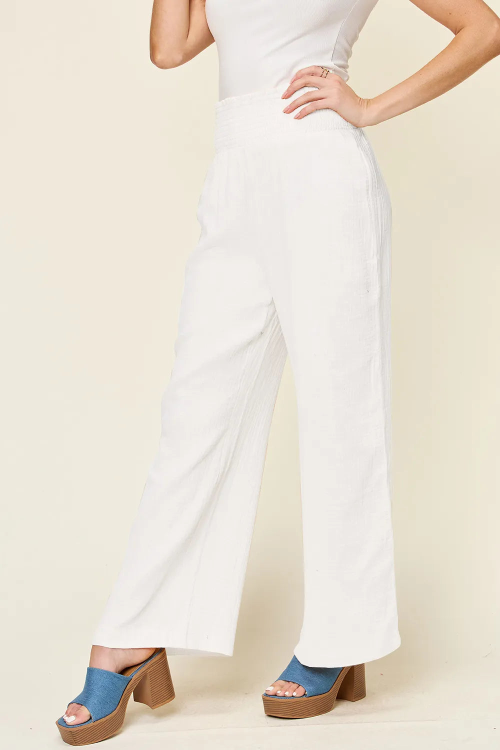 Double Take Full Size Texture Smocked Waist Wide Leg Pants