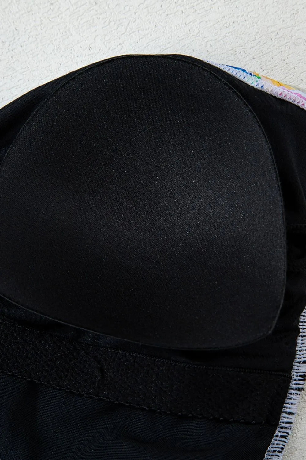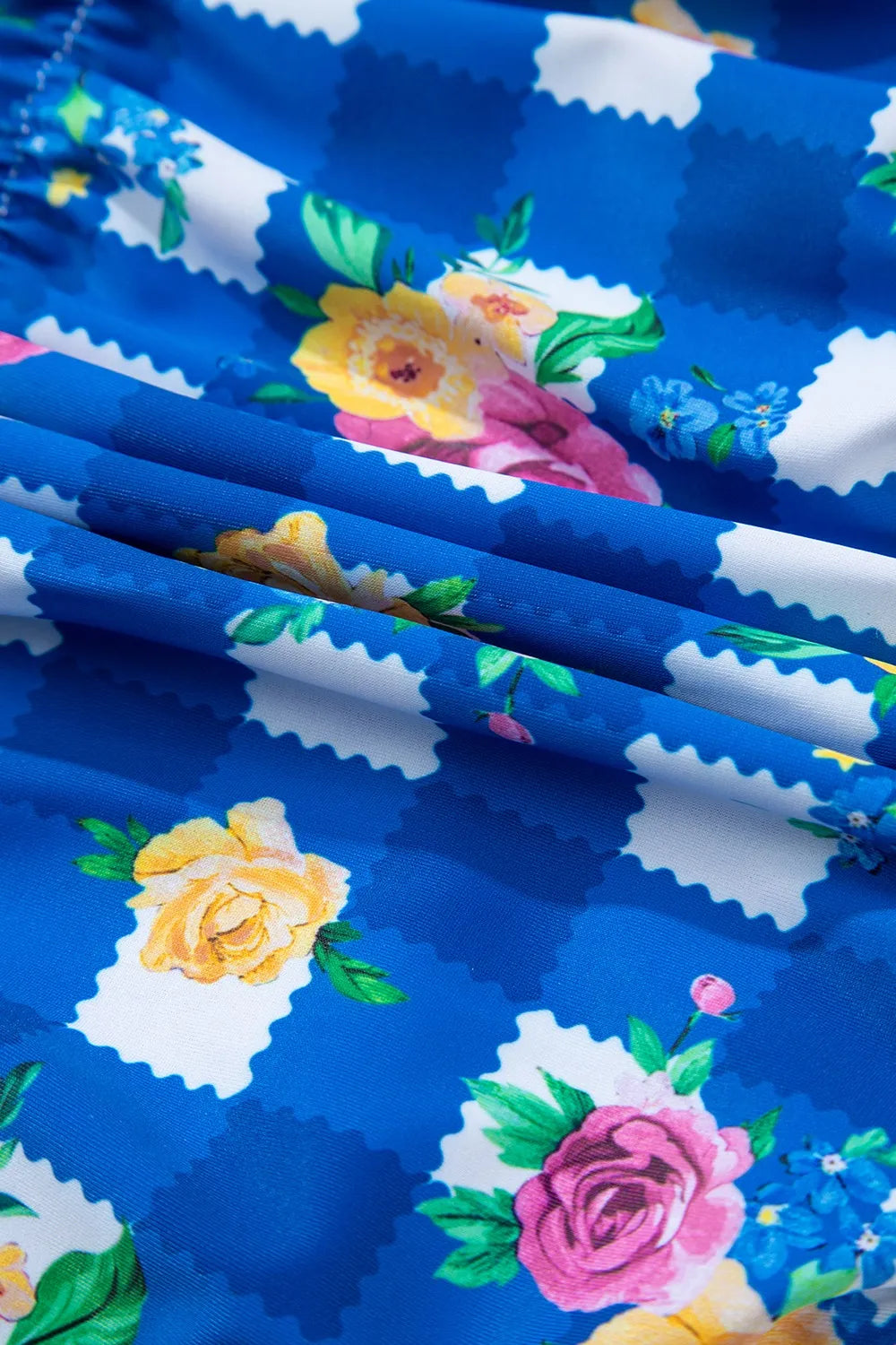 Floral Gingham Halter Neck Drawstring One Piece Swimwear