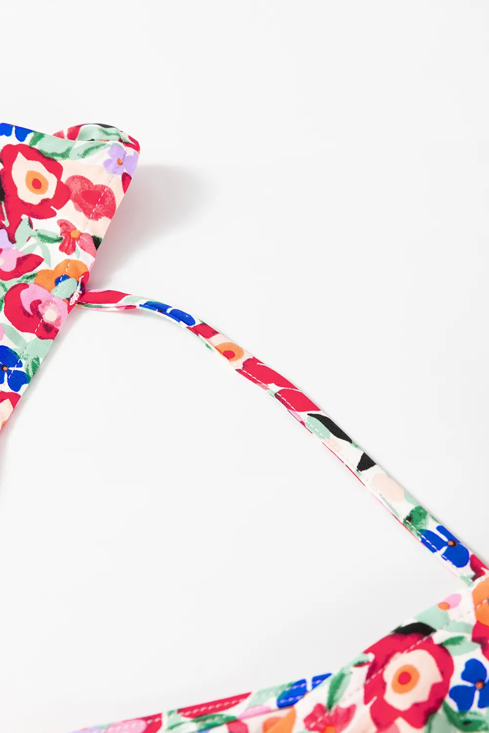 Floral Half Sleeve Deep V Neck Cutout Back Maxi Dress