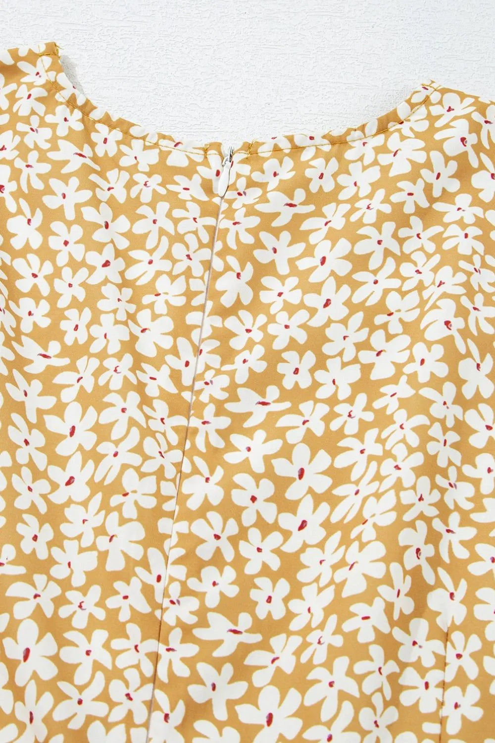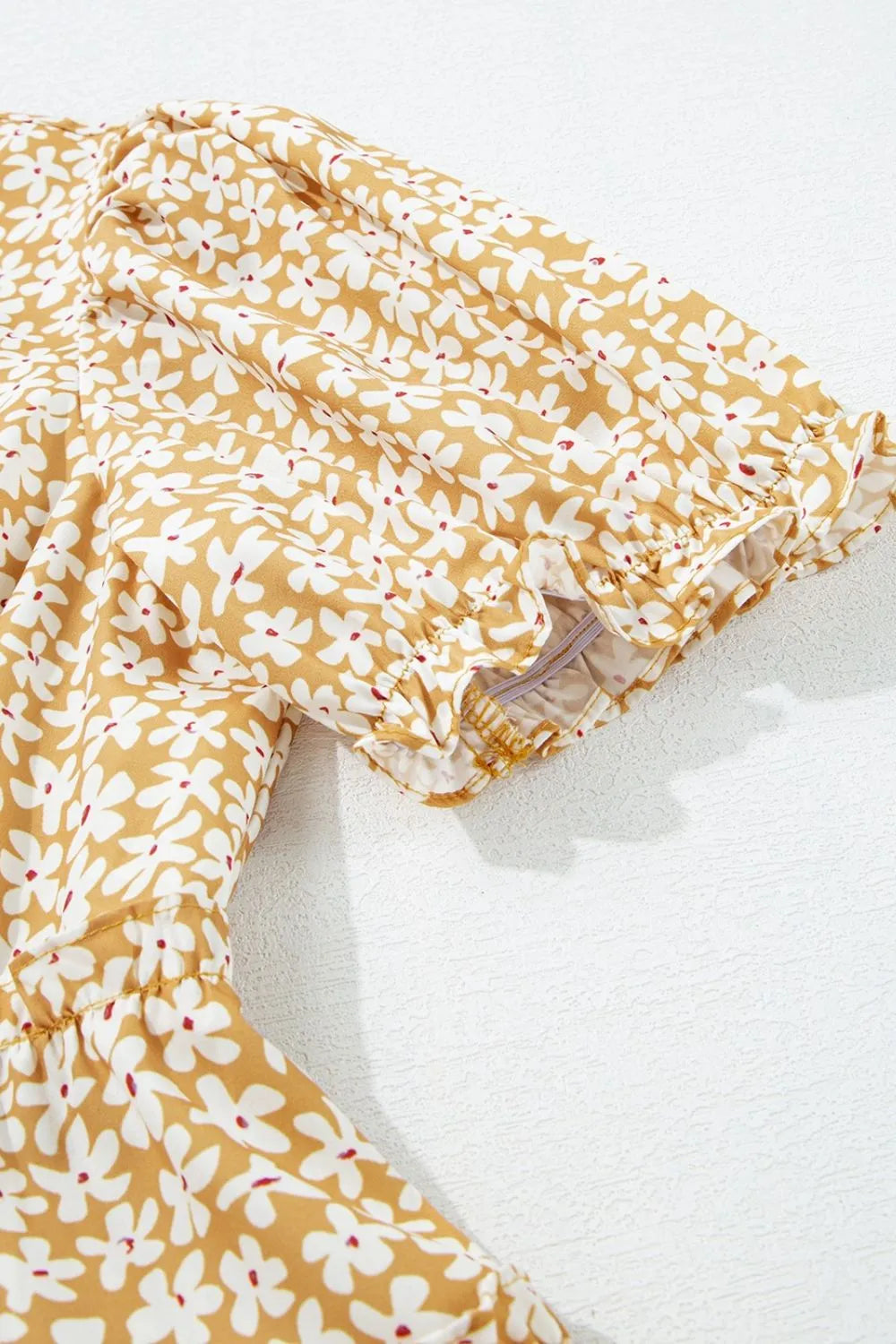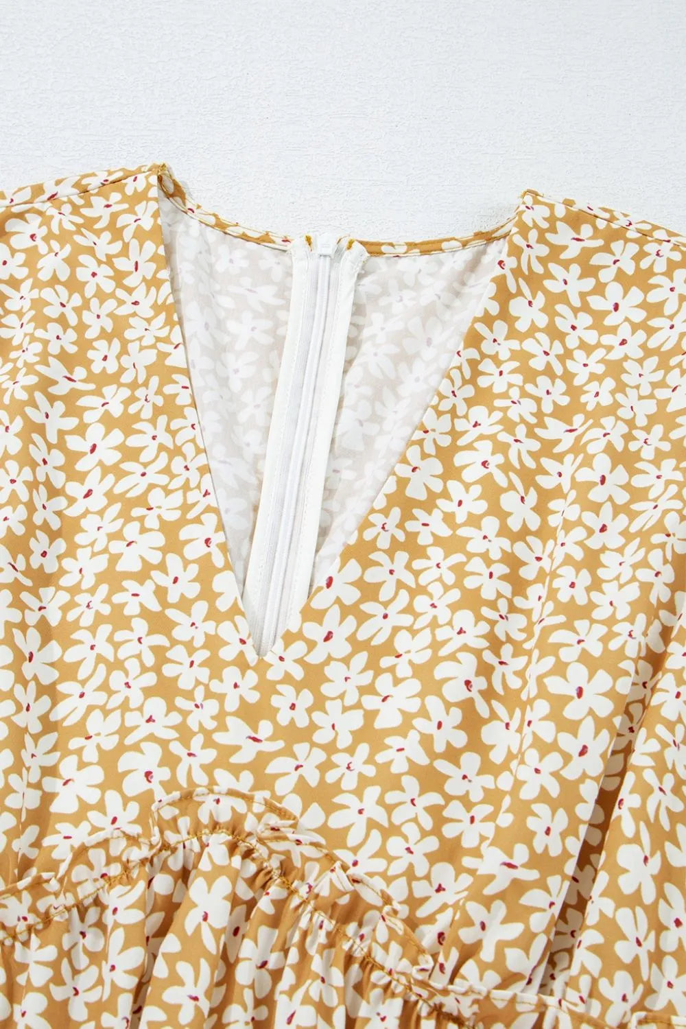Floral Short Sleeve Surplice Frilly Tiered Mini Dress