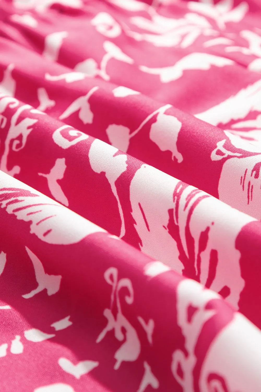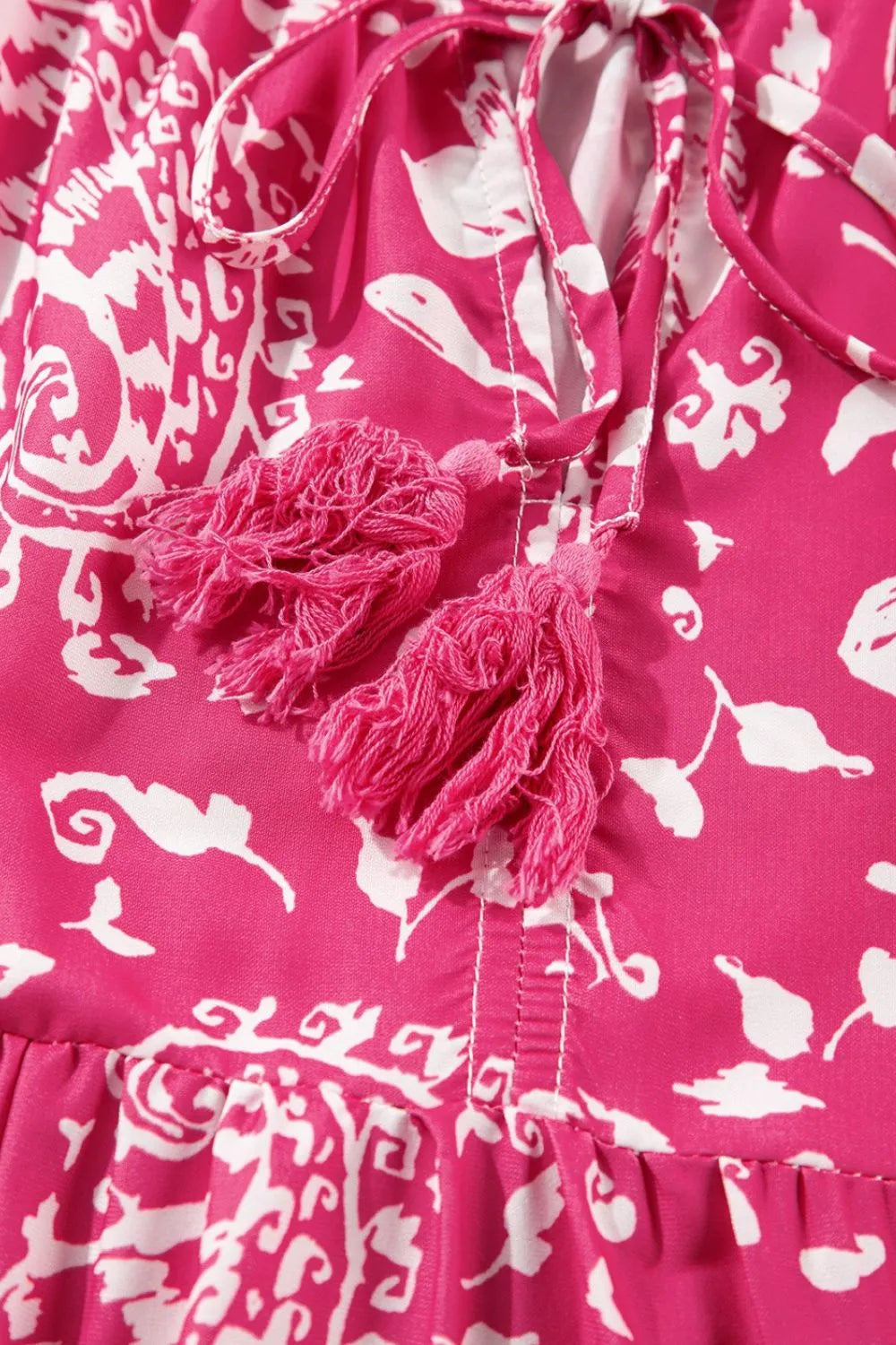 Floral Sleeveless Tasseled Tie Neck Tiered Midi Dress