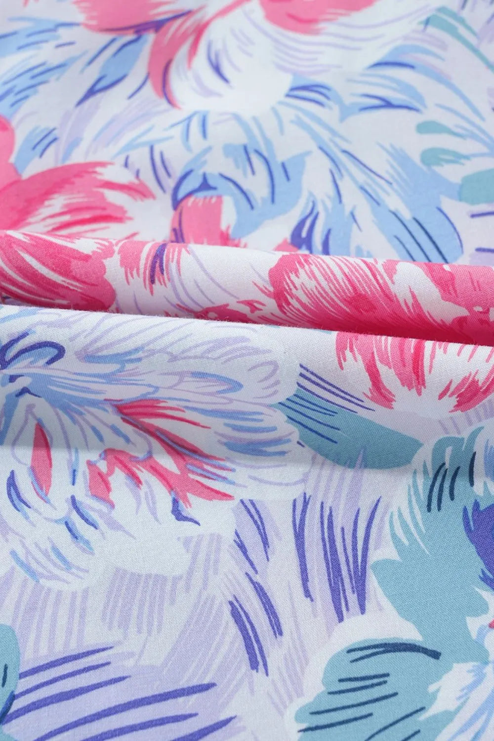 Floral Spaghetti Strap Surplice Neck Shirred Waist Mini Dress