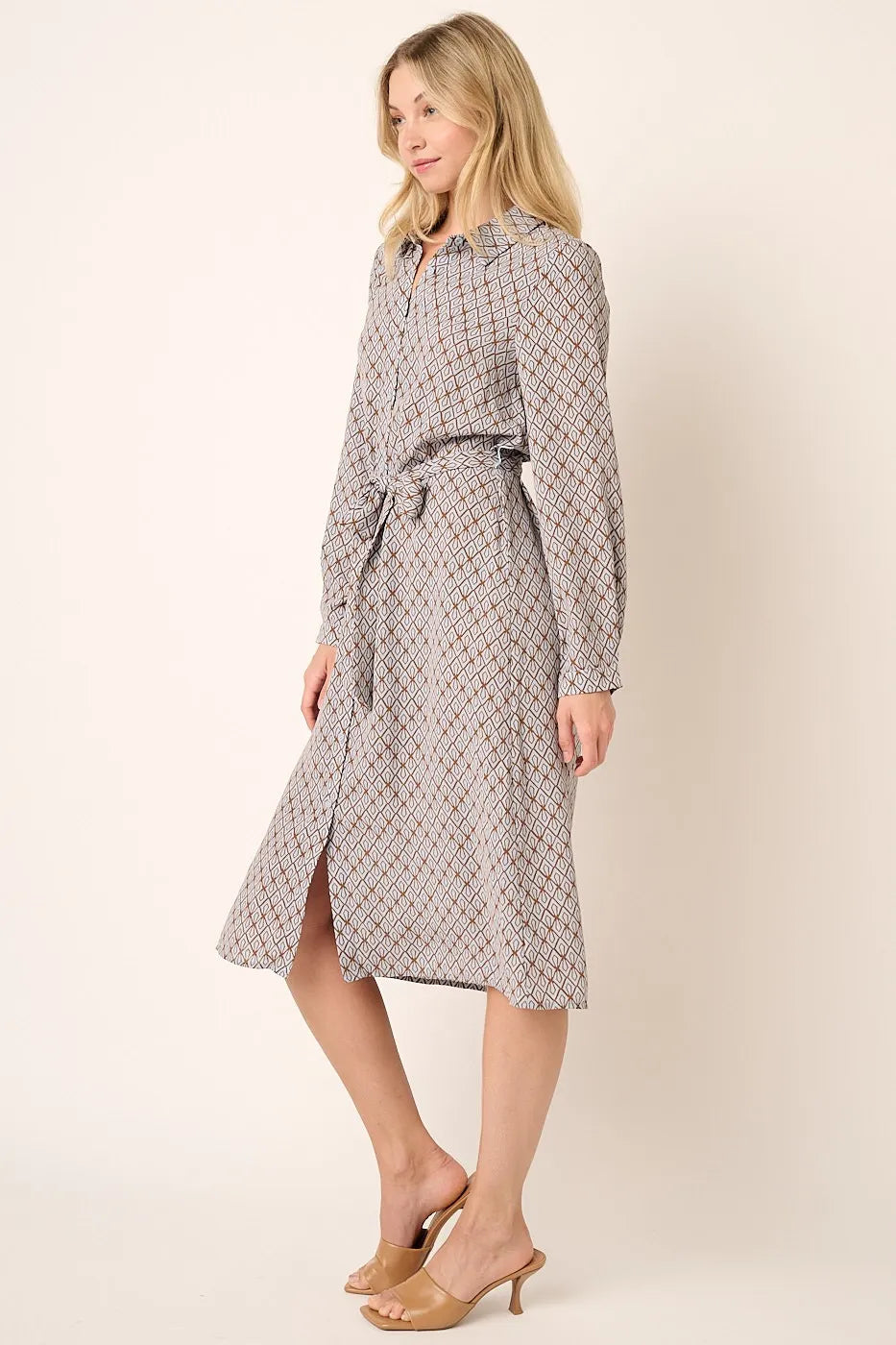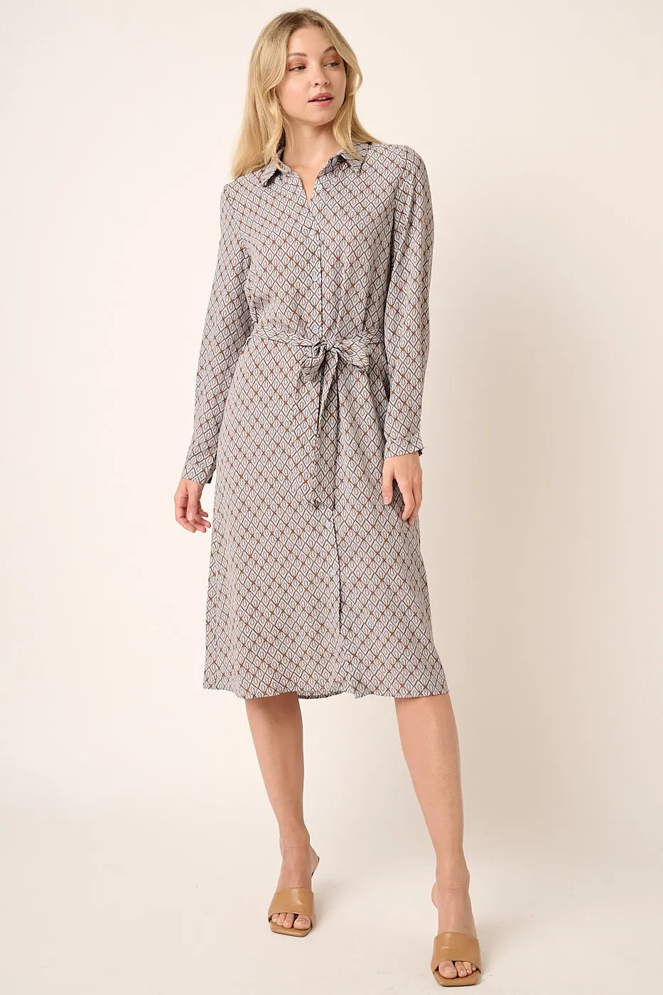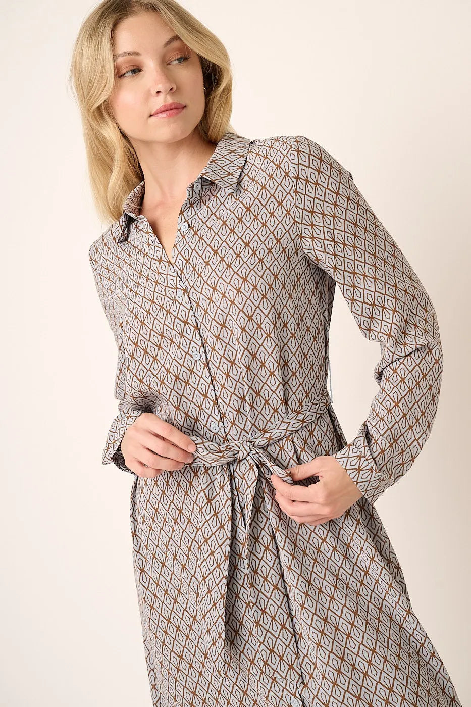 The Abstract Print Waist Tie Midi Shirt Dress is a stylish and versatile dress that features an abstract print design and a waist tie detail. This dress combines the casual and comfortable style of a shirt dress with a trendy midi length, making it perfect for various occasions. The waist tie allows you to cinch in the dress for a more defined silhouette. Pair it with sandals for a casual daytime look or dress it up with heels for a more polished ensemble.