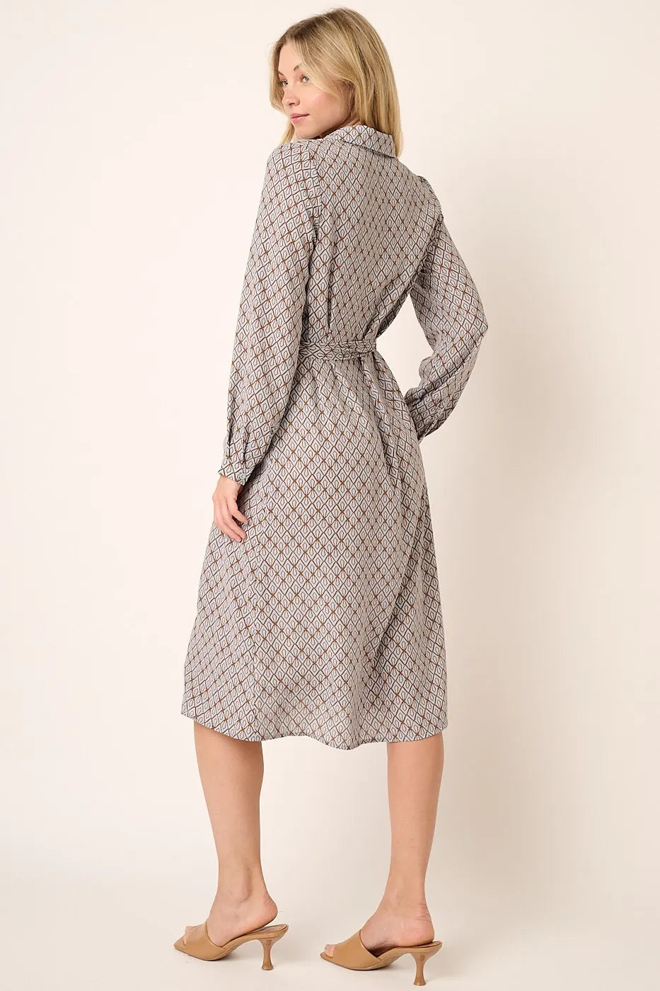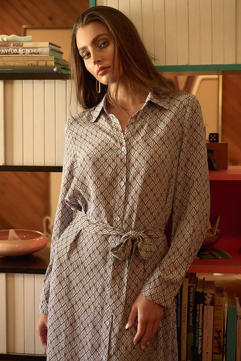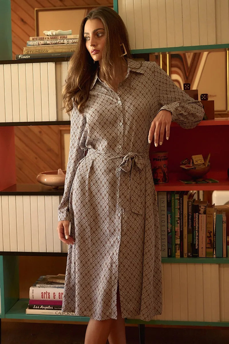 The Abstract Print Waist Tie Midi Shirt Dress is a stylish and versatile dress that features an abstract print design and a waist tie detail. This dress combines the casual and comfortable style of a shirt dress with a trendy midi length, making it perfect for various occasions. The waist tie allows you to cinch in the dress for a more defined silhouette. Pair it with sandals for a casual daytime look or dress it up with heels for a more polished ensemble.